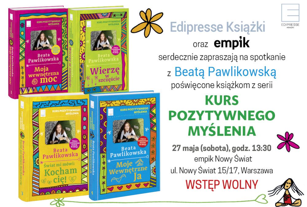 Zapraszam na spotkanie autorskie w Empiku Nowy Świat, ul. Nowy Świat 15/17, premiera kolejnego tomu „Kursu pozytywnego myślenia, będą książki w promocyjnej cenie, sobota 27 maja godz. 13.30