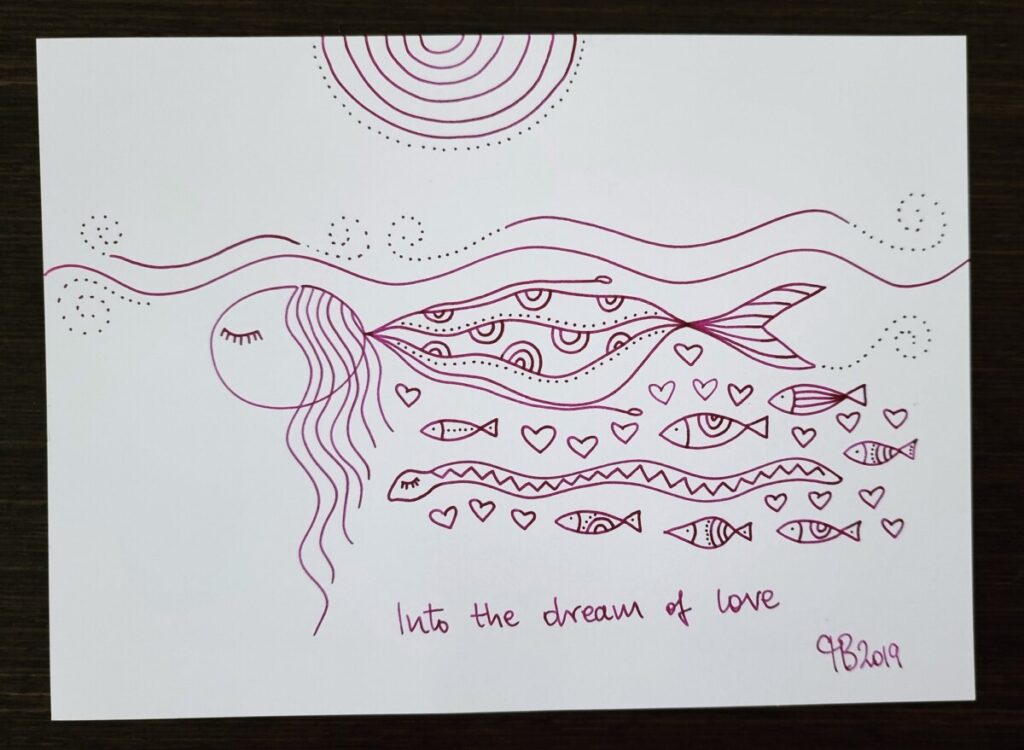 Felietony Środa, 30 czerwca środa, 30.06.2021 Znalazłam dzisiaj ten rysunek w szufladzie, narysowany chyba dokładnie rok temu latem Czy ty też płyniesz „into the dream of love”, czyli w „marzenie miłości”? Czy wiesz, że wszystko czego potrzebujesz jest w Tobie? Udostępnij na Facebooku