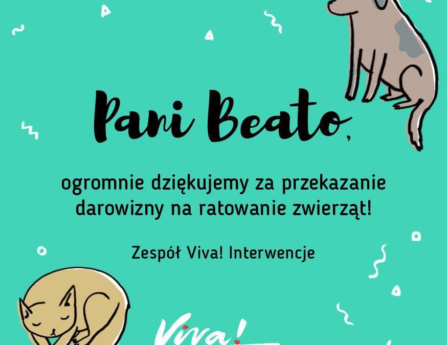Wiem też, że kwota przelewu dotarła do Fundacji Viva Interwencje, bo i ja dostałam podziękowania 😊