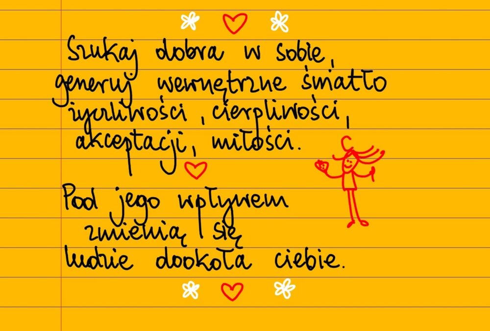 Żółte kartki Szukaj dobra poniedziałek, 23.09.2024 Szukaj dobra w sobie, generuj wewnętrzne światło życzliwości, cierpliwości, akceptacji, miłości. Pod jego wpływem zmienią się ludzie dookoła ciebie, ❤ #żółtakartka Udostępnij na Facebooku
