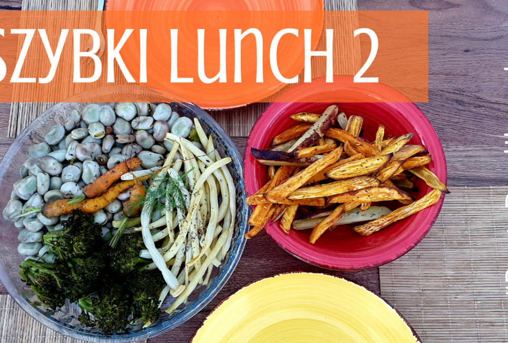 Filmy Kuchnia Szybki lunch 2 piątek, 21.06.2019 Pieczony bób, fasolka szparagowa, marchewki i młode brokułki z frytkami ze słodkich i zwykłych ziemniaków Udostępnij na Facebooku
