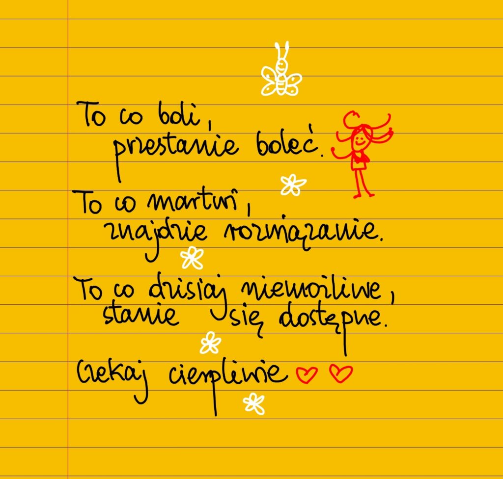 To co boli, przestanie boleć. To, co martwi, znajdzie rozwiązanie. To, co dzisiaj jest niemożliwe, stanie się dostępne. Czekaj cierpliwie. ❤ #żółtakartka