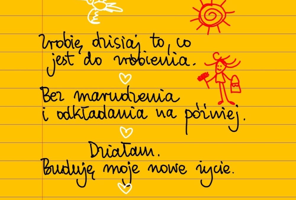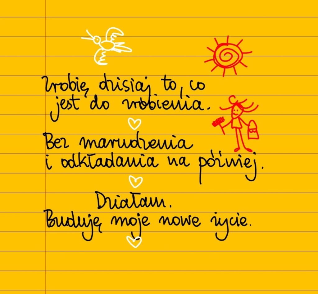 Żółte kartki To co jest do zrobienia piątek, 26.08.2022 Zrobię dzisiaj to co jest do zrobienia. Bez marudzenia i odkładania na później. Działam. Buduję moje nowe życie. #żółtakartka Udostępnij na Facebooku