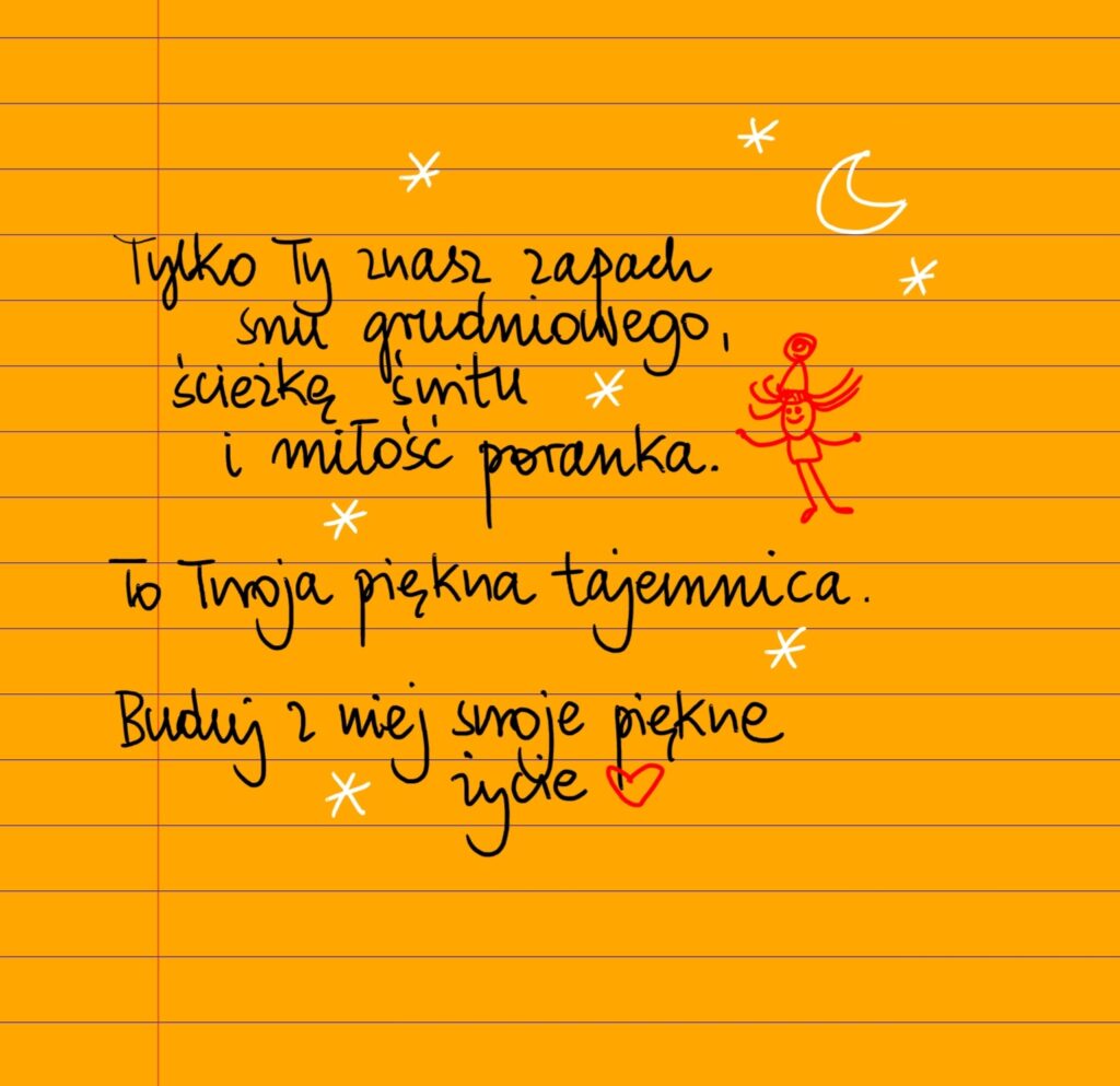 Tylko ty znasz zapach snu grudniowego, ścieżkę świtu i miłość poranka. To twoja piękna tajemnica. Buduj z niej swoje piękne życie ❤