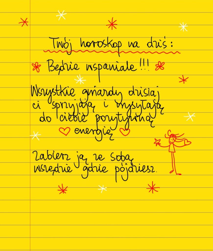 Twój horoskop na dziś: Będzie wspaniale! Wszystkie gwiazdy dzisiaj ci sprzyjają i wysyłają do ciebie pozytywną energię. Zabierz ją ze sobą wszedzie gdzie pójdziesz. #żółtakartka