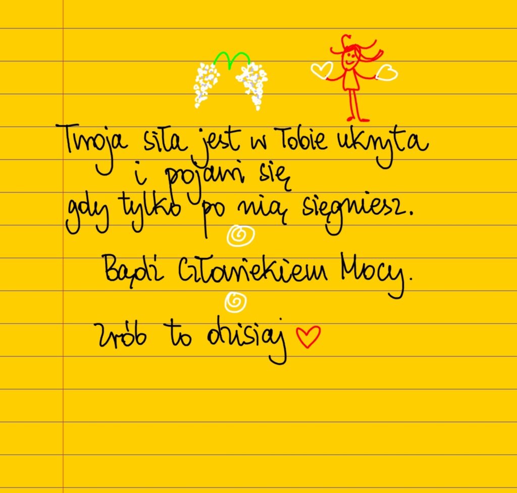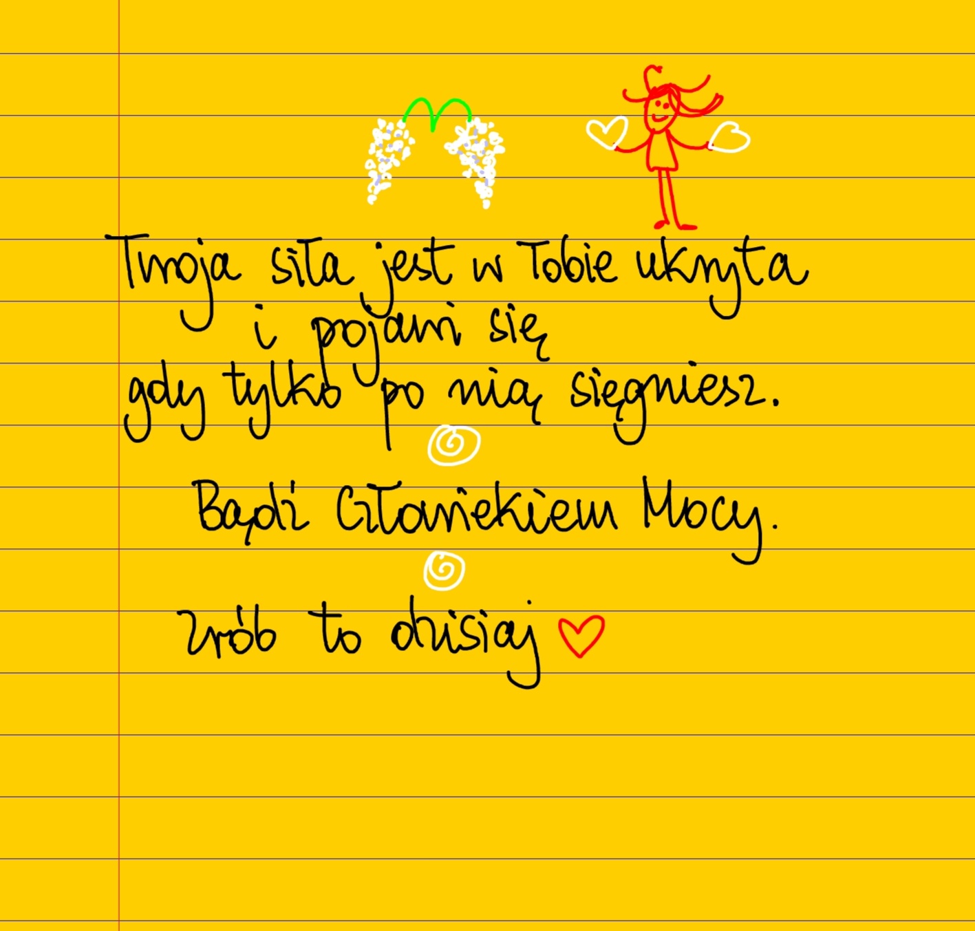 Żółte kartki Twoja siła piątek, 26.04.2024 Twoja siła jest w tobie ukryta i pojawi się kiedy tylko po nią sięgniesz. Bądź Człowiekiem Mocy. Zrób to dzisiaj! #żółtakartka #beatapawlikowska Udostępnij na Facebooku