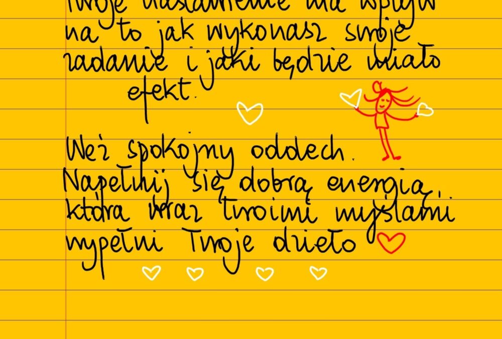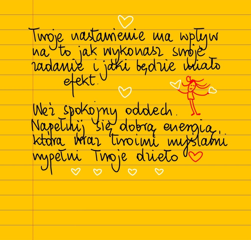 Twoje nastawienie do zadania, jakie przed tobą stoi, ma wpływ na to jak je wykonasz i jaki będzie jego efekt. Zatrzymaj się. Weź spokojny oddech. Napełnij się dobrą energią, która wraz twoimi myślami i działaniem zostanie przeniesiona do twojego dzieła ❤