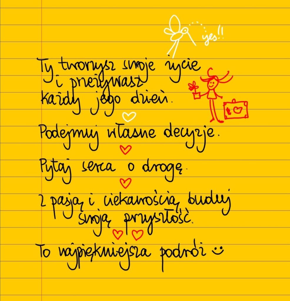 Żółte kartki Ty tworzysz swoje życie wtorek, 27.05.2025 Ty tworzysz swoje życie i przeżywasz każdy jego dzień. Podejmuj własne decyzje, pytaj serca o drogę, z pasją i ciekawością buduj swoją przyszłość. To najpiękniejsza podróż 😊 #żółtakartka Udostępnij na Facebooku