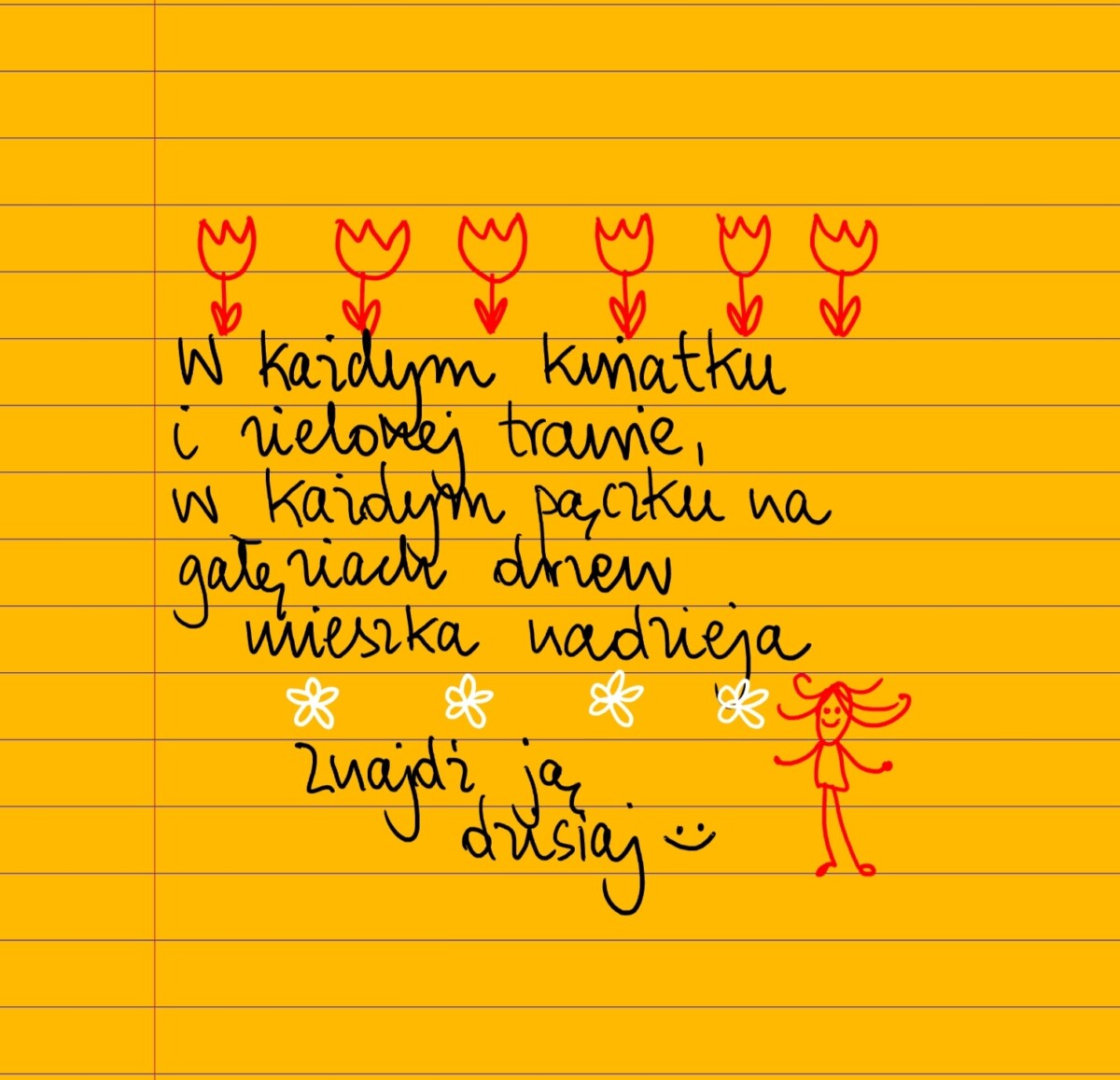 Żółte kartki W każdym kwiatku poniedziałek, 20.03.2023 W każdym kwiatku i zielonej trawie, w każdym pączku na gałęziach drzew mieszka nadzieja. Znajdź ją dzisiaj ❤ #żółtakartka Udostępnij na Facebooku