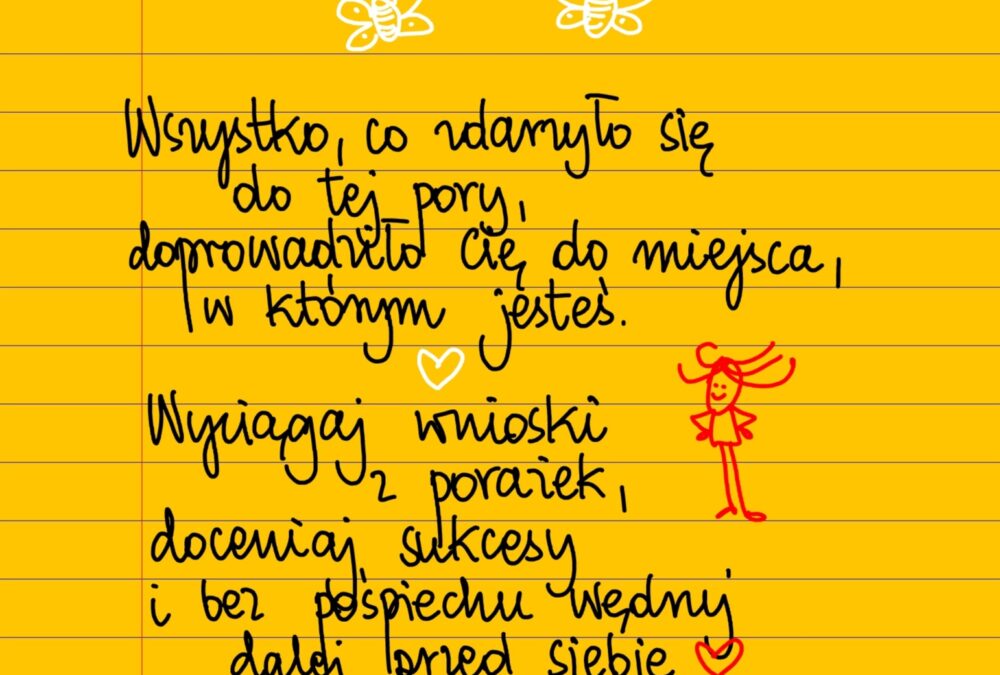 Żółte kartki Wędruj dalej środa, 17.05.2023 Wszystko co zdarzyło się do tej pory doprowadziło cię do miejsca, w którym jesteś. Wyciągaj wnioski z porażek, ucz się z błędów, doceniaj sukcesy. I bez pośpiechu wędruj dalej przed siebie ❤ #żółtakartka Udostępnij na Facebooku