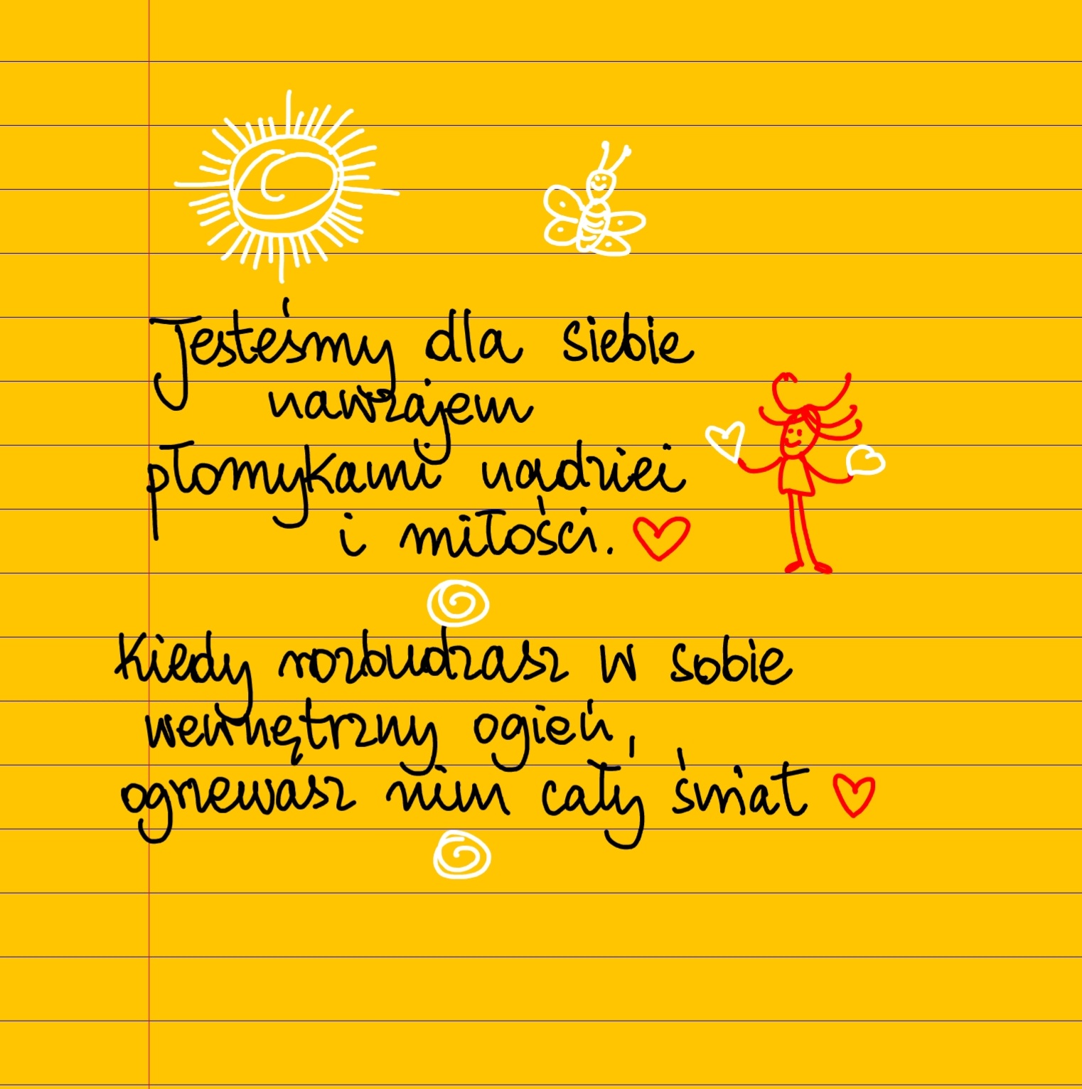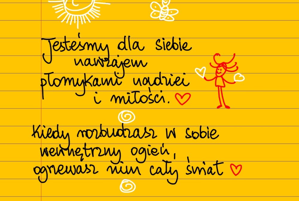 Jesteśmy dla siebie nawzajem płomykami nadziei i miłości. Kiedy rozbudzasz w sobie wewnętrzny ogień, ogrzewasz nim cały świat. #żółtakartka