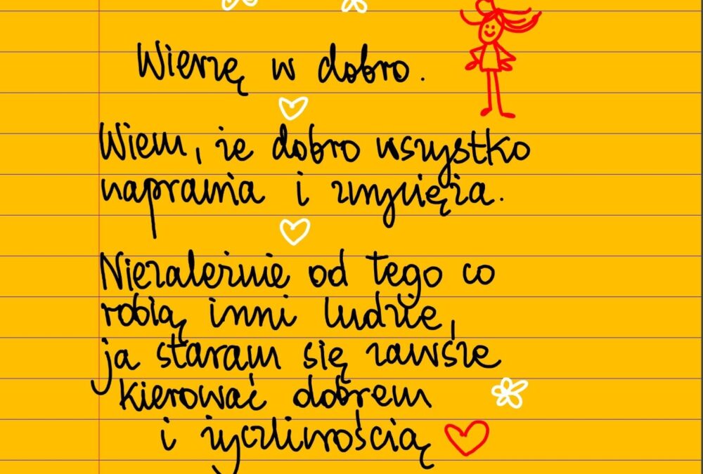 Żółte kartki Wierzę w dobro środa, 12.04.2023 Wierzę w dobro. Wiem, że dobro wszystko naprawia i dobro zawsze zwycięża. Niezależnie co robią w tym czasie inni ludzie, ja zawsze staram kierować się dobrem i życzliwością. #żółtakartka Udostępnij na Facebooku
