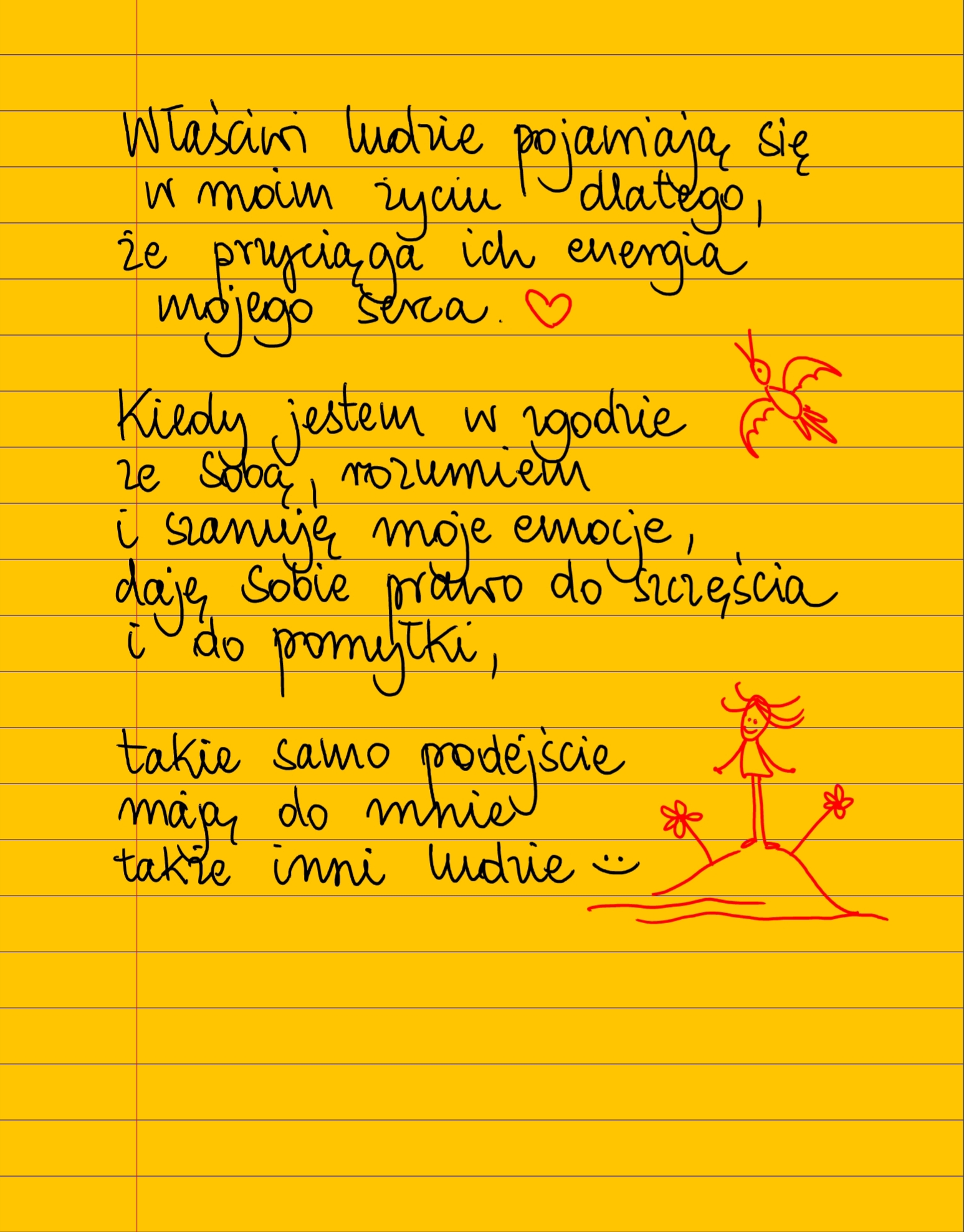 Właściwi ludzie pojawiają się w moim życiu dlatego, że przyciąga ich energia mojego serca ❤ Kiedy jestem w zgodzie ze sobą, rozumiem i szanuję moje emocje, daje sobie prawo do szczęścia i do pomyłki, takie samo podejście mają do mnie także inni ludzie ❤ #żółtakartka