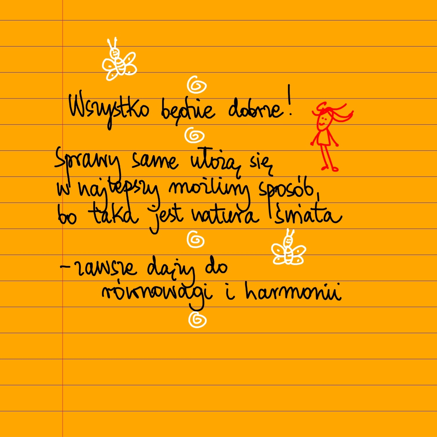 Wszystko będzie dobrze! Sprawy same ułożą się w najlepszy możliwy sposób, bo taka jest natura świata – zawsze dąży do równowagi i harmonii ❤