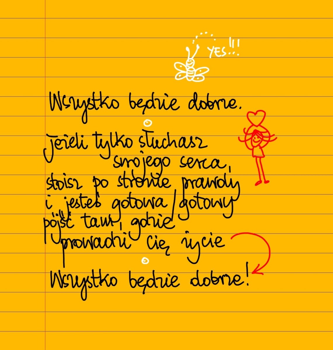 Żółte kartki Wszystko będzie dobrze czwartek, 26.01.2023 Wszystko będzie dobrze. Jeśli tylko słuchasz swojego serca, stoisz po stronie prawdy i jesteś gotowa/gotowy pójść tam, gdzie życie Cię prowadzi, wszystko będzie dobrze 😻❤ #żółtakartka Udostępnij na Facebooku