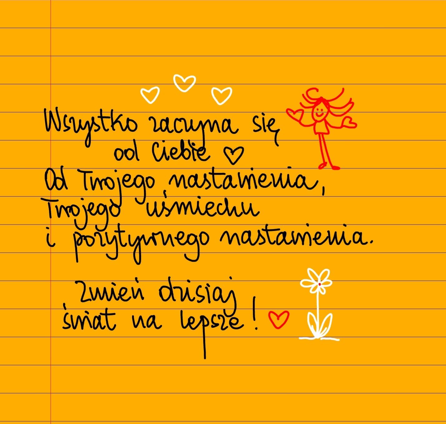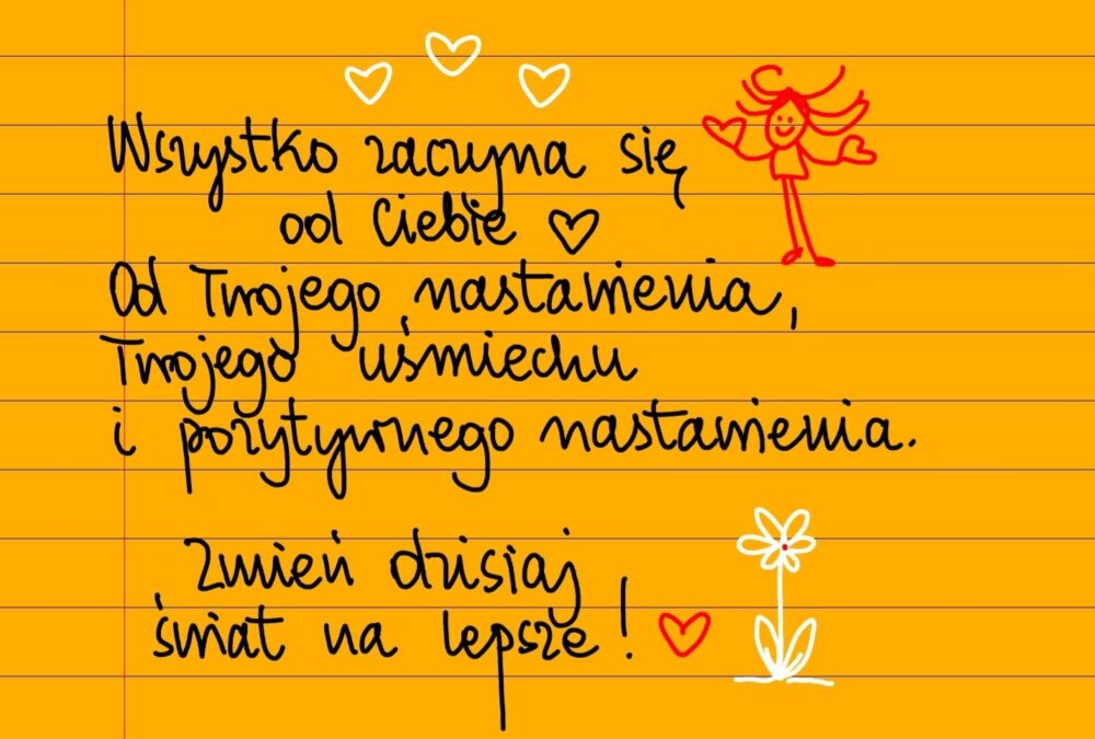 Żółte kartki Wszystko zaczyna się od ciebie piątek, 31.10.2025 Wszystko zaczyna się od ciebie. Od twojego nastawienia, twojego uśmiechu i pozytywnego nastawienia. Zmień dzisiaj świat na lepsze 😊 Udostępnij na Facebooku