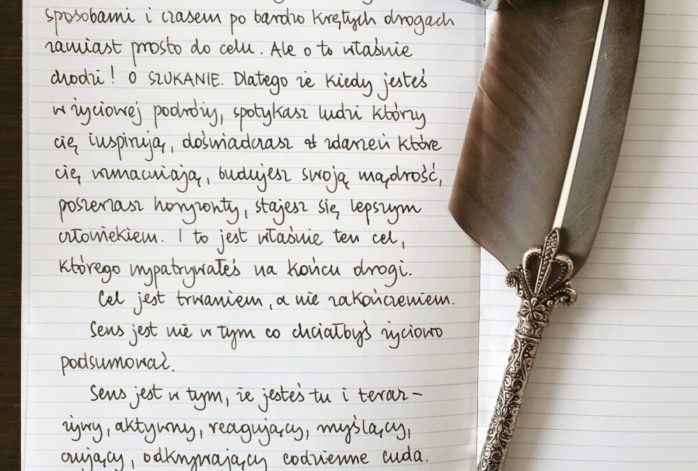 Każdy szuka sensu w życiu. Różnymi sposobami i czasem po bardzo krętych drogach zamiast prosto do celu. Ale o to właśnie chodzi! O SZUKANIE. Dlatego że kiedy jesteś w życiowej podróży, spotykasz ludzi, którzy cię inspirują, doświadczasz zdarzeń, które cię wzmacniają, budujesz swoją mądrość, poszerzasz horyzonty, stajesz się lepszym człowiekiem. I to jest właśnie ten cel, którego wypatrywałeś na końcu drogi.