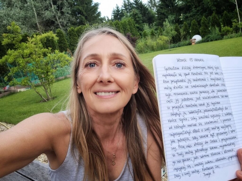 Gdybyś ją zobaczyła, pamiętałabyś do końca życia, żeby unikać sytuacji i substancji, od których można się uzależnić. I pewnie zapragnęłabyś dbać o swój mózg najlepiej jak potrafisz, żeby zawsze był sprawny i zdrowy. Piszę więc dzisiaj do Ciebie i przypominam, że Twój mózg potrzebuje tlenu, wyprowadzaj go na spacer, jedz zdrowe tłuszcze i błonnik, wysypiaj się, unikaj cukru, alkoholu i papierosów. Dbaj o swój mózg. Kocham Cię,