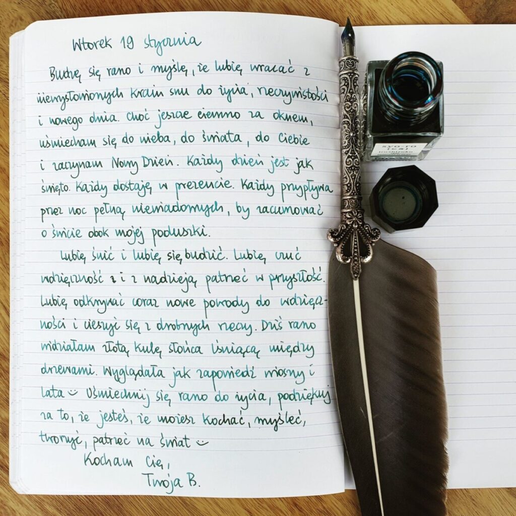 Budzę się rano i myślę, że lubię wracać z niewysłowionych krain snu do życia, rzeczywistości i nowego dnia. Choć jeszcze ciemno za oknem, uśmiecham się do nieba, do świata, do Ciebie i zaczynam Nowy Dzień. Każdy dzień jest jak święto. Każdy dostaję w prezencie. Każdy przypływa przez noc pełną niewiadomych, by zacumować o świcie obok mojej poduszki.