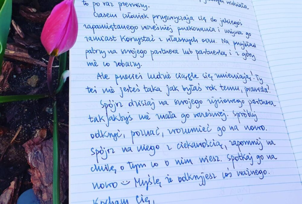Spójrz dzisiaj na swojego życiowego partnera tak, jakbyś nie znała go wcześniej. Spróbuj odkryć, poznać, zrozumieć go na nowo. Spójrz na niego z ciekawością, zapomnij na chwilę o tym co o nim wiesz. Spotkaj go na nowo Myślę, że odkryjesz coś ważnego.