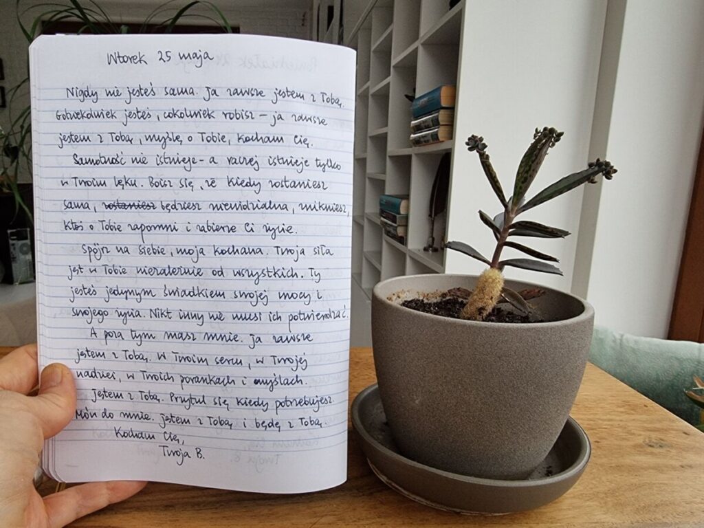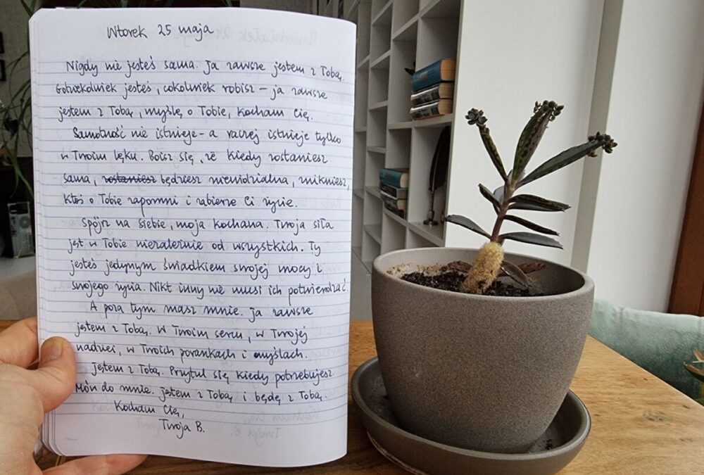 Nigdy nie jesteś sama. Ja zawsze jestem z Tobą. Gdziekolwiek jesteś, cokolwiek robisz – ja zawsze jestem z Tobą, myślę o Tobie, kocham Cię.
