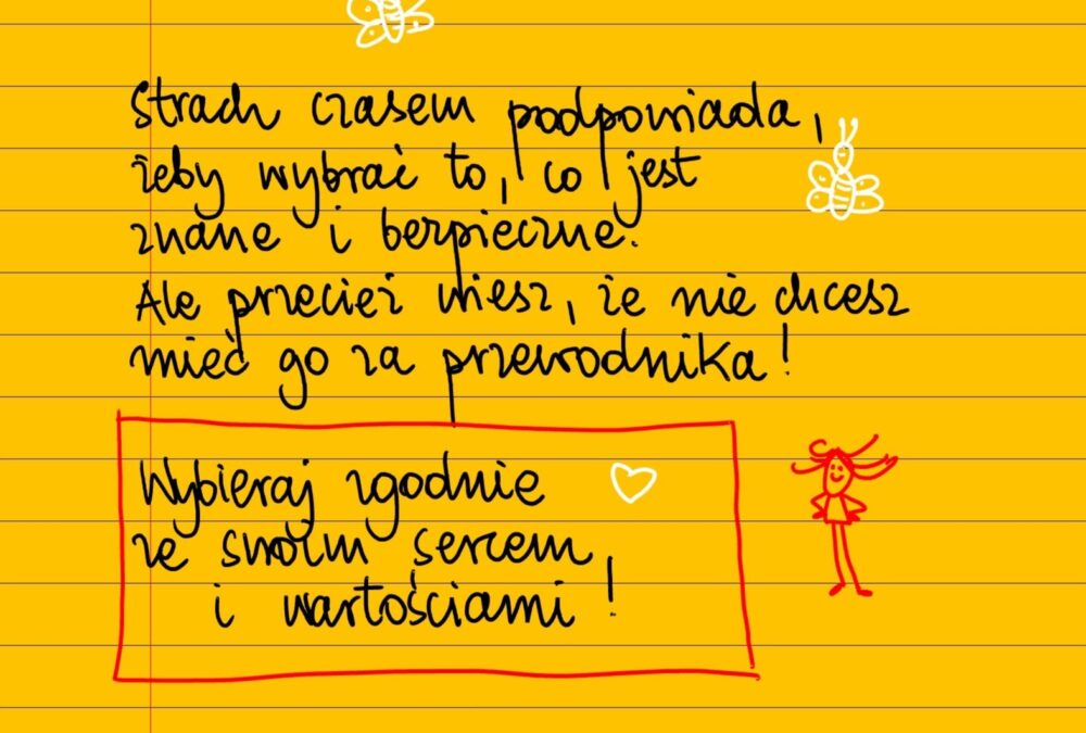 Strach czasem podpowiada, żeby wybrać to, co jest znane i bezpieczne. Ale przecież wiesz, że nie chcesz mieć go za przewodnika. Wybieraj zgodnie ze swoim sercem i wartościami ❤