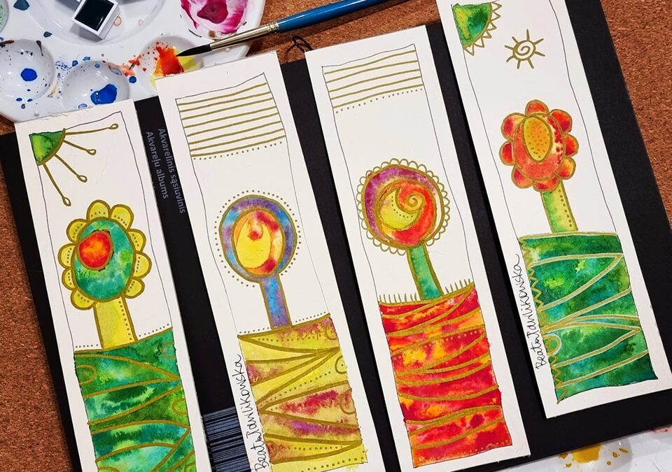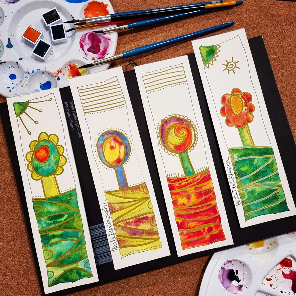 Drzewka radości. Akwarele, zakładki do książek 🌲🌴❤️ Przedświątecznie zdobione złotem 😊
