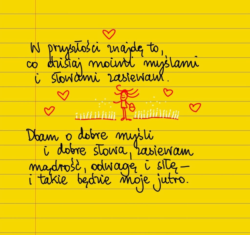 W przyszłości znajdę to, co dzisiaj moimi myślami i słowami zasiewam. Dbam o dobre myśli i dobre słowa, zasiewam mądrość, siłę i odwagę, i takie będzie moje jutro. #żółtakartka