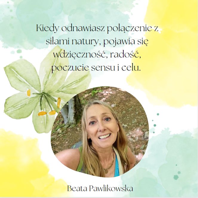 Szmaragdowe krzaczki ziemniaków, brązowa ziemia, szare kamyki. Błękitne niebo z białymi chmurkami. Złote słoneczniki. Zatrzymaj się, rozejrzyj dookoła. Kiedy odnawiasz połączenie z siłami natury, pojawia się wdzięczność, radość, poczucie sensu i celu.