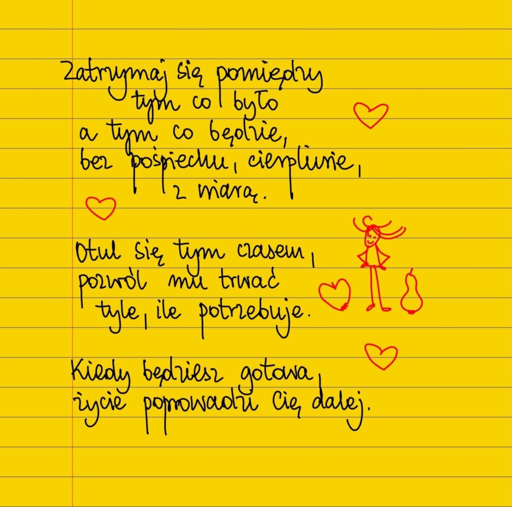 Żółte kartki Zatrzymaj się wtorek, 28.11.2023 Zatrzymaj się pomiędzy tym co było a tym co będzie, bez pośpiechu, cierpliwie, z wiarą ❤ Otul się tym czasem, pozwól mu trwać tyle, ile potrzebuje. Kiedy będziesz gotowa/gotowy, życie poprowadzi Cię dalej ❤ #żółtakartka Udostępnij na Facebooku