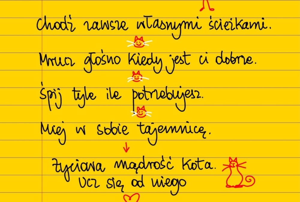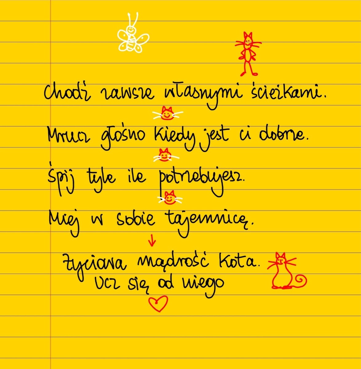 Chodź zawsze własnymi ścieżkami. Mrucz głośno kiedy jest Ci dobrze. Śpij tyle ile potrzebujesz. Miej w sobie tajemnicę. Życiowa mądrość kota. Ucz się od niego 😺😺😺😺 #żółtakartka
